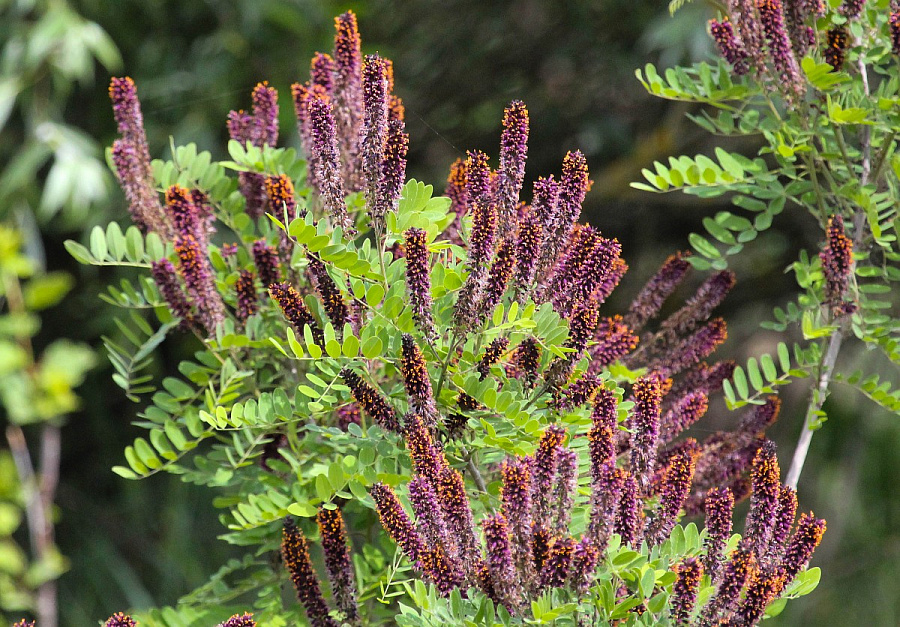 Этот кустарник радует глаз темно-пурпурными цветками с желтыми пыльниками, цветущими в первые два месяца. Летом листва остается зеленой, придавая вашему саду свежий вид. Аморфа кустарниковая предпочитает солнечные места, поэтому выберите для нее открытое место на газоне или в миксбордере.