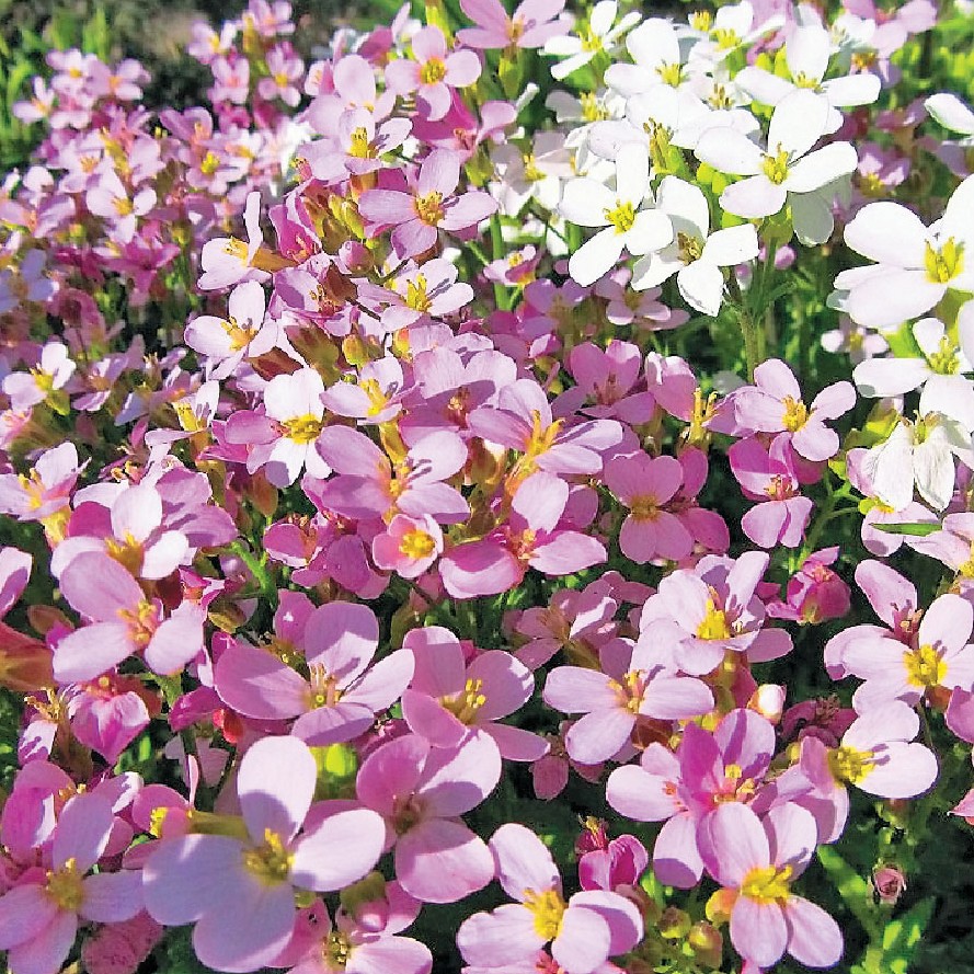 Семена арабиса смесь окрасок подарят возможность украсить садовый ландшафт пушистым цветущим ковром. Это невысокое растение незаменимо при оформлении каменистых горок, бордюров и высоких клумб. Микс позволяет вырастить кусты с белыми и розовыми цветами. Рассада арабиса сохраняет эстетичность не только во время цветения, но и после окончания данного периода. После того, как соцветия отцветут, растение необходимо подстричь, уменьшив его объем на 5 см. Через пару недель зеленый ковер опять станет пышным. Для посадки семян арабиса подходят солнечные и затененные участки рыхлой почвы.