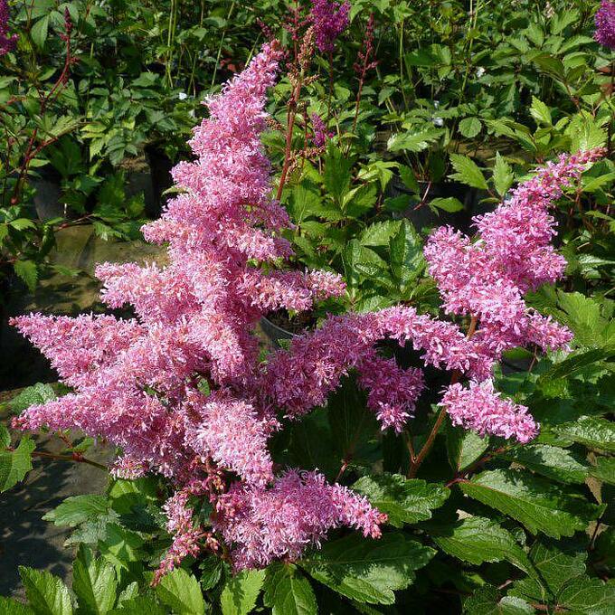 Рассада астильбы «Каттлея» (Cattleya) хорошо переносит морозы. Только если будет мало снега, то тогда могут подмерзнуть молодые побеги. Поэтому в этом случае растение лучше накрыть. Высаживают рассаду астильбы «Каттлея» в любую почву, хорошо удобренную навозом, перегноем или торфом. Если на участке высокий уровень грунтовых вод, то цветок хорошо с этим справляется. Хорошо освещенные участки для этого растения не подходят. Семена астильбы «Каттлея» лучше высевать в полузатененные места. Высота растения около 80 см. Цветение приходится на июль. Тогда появляются соцветия розового цвета.