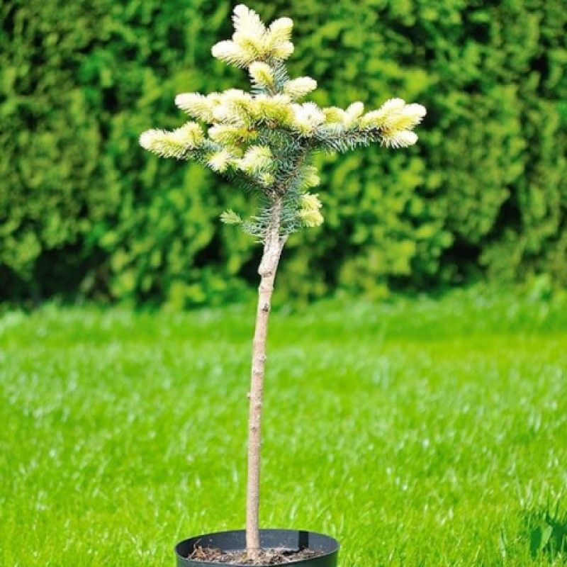 Элегантная и изысканная ель колючая биалобок в штамбе - настоящий король вашего сада! Ее ствол прочный и устойчивый, а размеры растения позволяют создать великолепные групповые посадки или выделить его в качестве украшения одиночной посадки. Форма листьев этого растения поражает своей красотой и оригинальностью, придавая вашему саду особый шарм.