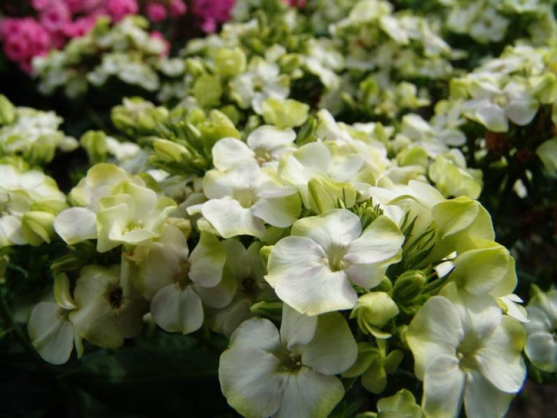 Флокс метельчатый джейд - это изысканное растение с нежными белыми цветками, украшенными бледно-зелеными кончиками лепестков. Его стебель прочный и прямой, достигает высоты до 50 см, что делает его идеальным для создания красивых цветочных композиций в саду. Листья флокса имеют интересную форму, что добавляет изюминку в общий вид растения.