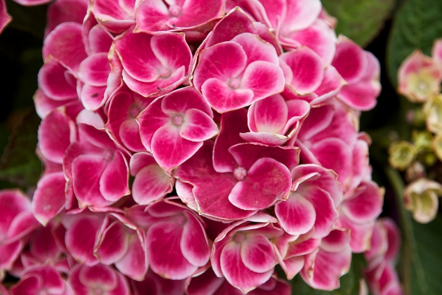 Гортензия крупнолистовая Tivoli - это великолепное растение с изысканными розовыми цветками, украшенными белой каймой. Ее ярко-зеленые листья создают удивительный контраст и придают саду особый шарм. Это растение отличается высокой морозостойкостью и легкостью в уходе.