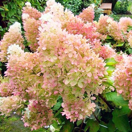 - гортензия может приспосабливаться к разным видам почв. Салатовые бутоны, распускаясь, становятся белоснежными. Отцветая, гортензия приобретает нежно-розовый оттенок.