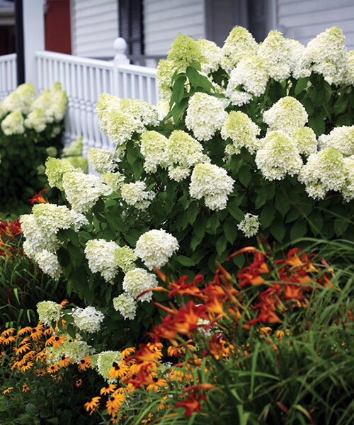 Саженцы гортензии метельчатой Diamantino (Диамантино) отличаются продолжительным цветением – с июня по сентябрь. Этот крупномер может вырасти до 120 сантиметров. Таких же размеров достигает и объем кроны. Сорт имеет ряд достоинств: