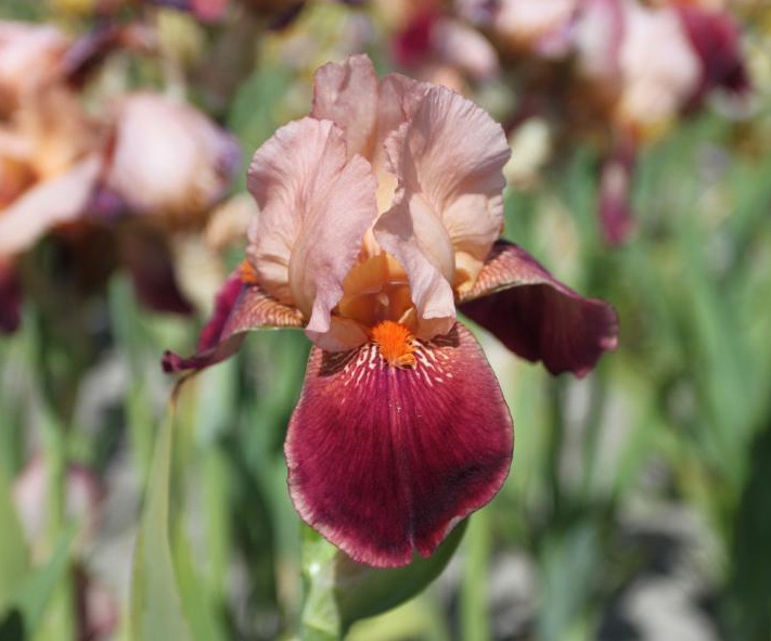 Рассада германских ирисов Циммарон Стрип (Cimmaron Strip) поможет в оформлении любого типа цветников, добавляя им нежности и привлекательности. Растение достигает в высоту 75 см, листья его плоские, имеют форму меча и не слишком толстые. Великолепный цветок достаточно крупный с верхними лепестками насыщенного оранжевого цвета и нижними – бордового и фиолетового оттенка. При цветении ирис Cimmaron Strip отличается устойчивостью к морозам. Также растение любит много света и отлично произрастает в черте города, в связи с чем, часть используется для насаждений в парках, около водоемов. А вот при плохой влажности цветки начинают быстро вянуть.