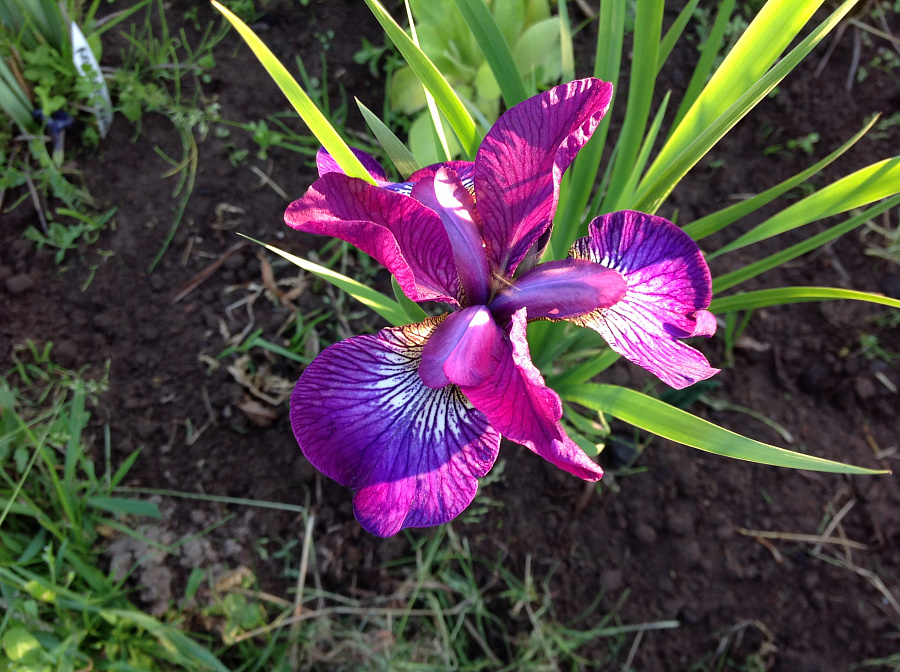 - неприхотливостью в уходе. Цветки имеют розово-лиловый оттенок с белыми или бело-желтыми рябыми пятнами у основания лепестков, на поверхности которых хорошо видны темные прожилки. Семена этого растения прорастают довольно хорошо, но размножать его лучше делением корня на части. Ирис сибирский Сверкающая Роза довольно долго стоит в срезанных букетах.