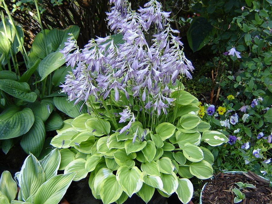 Рассада хосты гибридной Голден Тиара (Golden Tiara), которая представляет собой очень нарядный сорт, приживается во многих регионах. Листья крупные, сердцевидной формы насыщенного зеленого цвета с широкой кремово-желтой каемкой по краям. Цветет лавандовыми колокольчиками, которые образуют соцветия на концах высоких тонких стеблей.