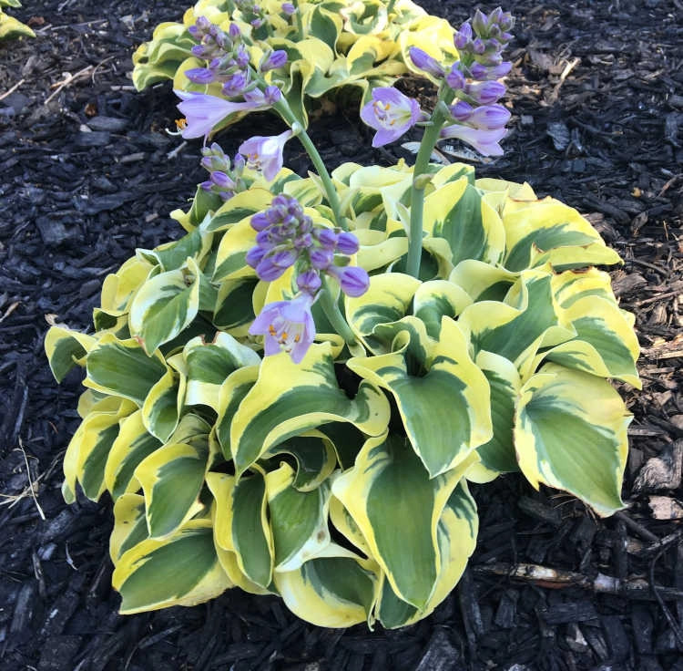 Весенняя окраска листвы : сине-зеленый центр окружен широким кремово-желтым краем