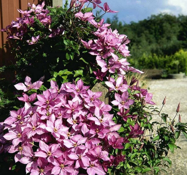 Клематис крупноцветковый "Маргарет Хант" - это великолепное растение, которое поразит вас своей красотой и изяществом. Его стебель прочный и устойчивый, достигает высоты до 400 см, что делает его идеальным для создания живых изгородей или одиночных посадок. Листья зеленого цвета имеют форму, придающую растению особый шарм. Цветки клематиса "Маргарет Хант" лилово-розовые, диаметром до 15 см, и расцветают в апреле, мае, июне и августе.
