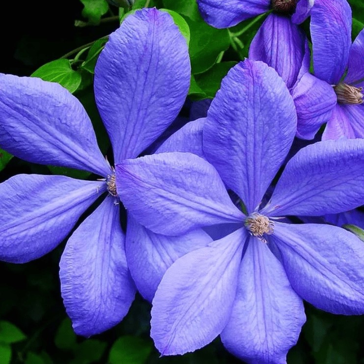 Окраска цветка : Цветки крупные, светло-лавандово-голубые с лиловым оттенком, временами полумахровые, тычинки светло-коричневые.