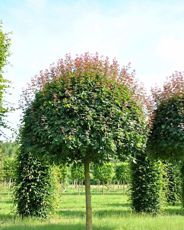 Саженцы Клёна полевого Ред (Red) часто применяются в одиночных посадках и живых изгородях, так как имеют оригинальную красноватую окраску листьев, сохраняют декоративность в течение всего вегетационного периода. Для растений стараются соблюсти следующие условия: