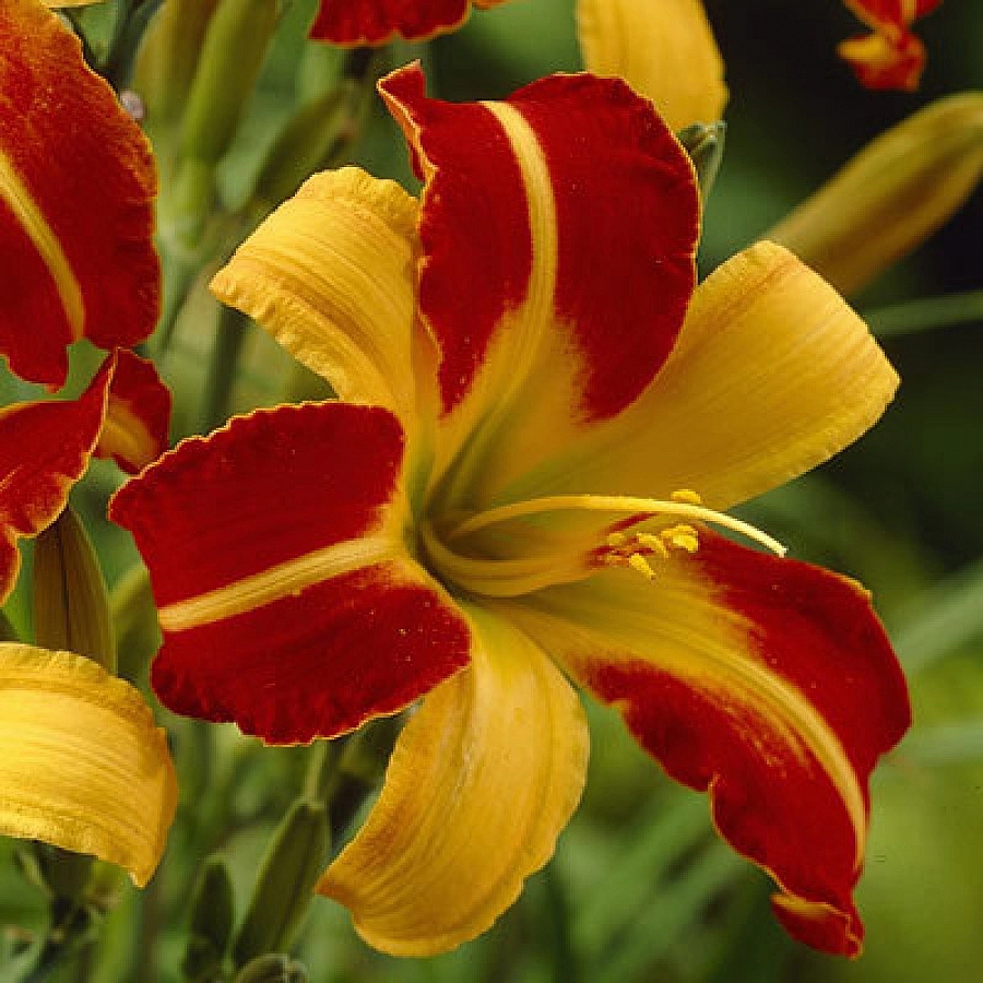 Рассада лилейника "Франс Халс" (Frans Hals) - это культура не столь прихотливая и будет расти при любых условиях. Цветки многолетника шести раздельные, крупные, чаще всего воронковидные. Они имеют яркий, контрастный желто-красный окрас и собираются по несколько штук в соцветия. Одновременно цветет до трех цветков, а общая длительность цветения куста - более трех недель. Высота цветоносов варьируется от 60 до 80 см. Рассада лилейника "Франс Халс" находит самое широкое применение: солитерные посадки среди газона, около водоема; групповые посадки с различными многолетниками.