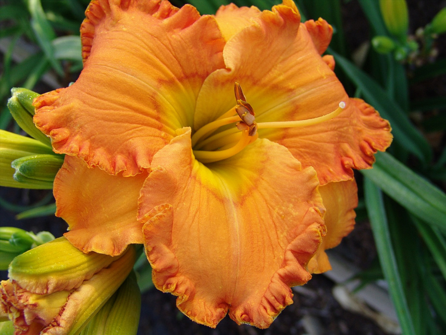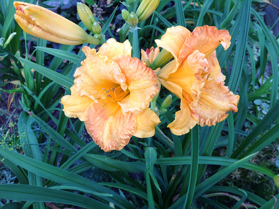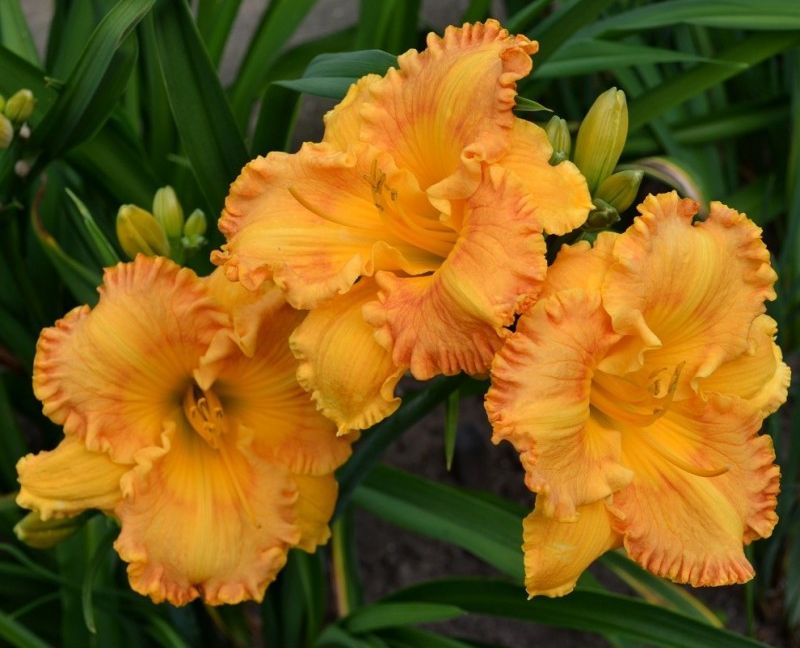 Рассада лилейника Оранж Нассау (Orange Nassau) дает возможность украсить свой палисадник сказочно красивыми цветами насыщенных оттенков. Растение цветет довольно рано, крупными бутонами персико-оранжевого цвета с огромным золотистым глазком и лимонным горлышком. Поверхность лепестков немного смятая, а их края сильно гофрированные. Лилейник Оранж Нассау является великолепным экземпляром для срезки в цветочные композиции, используемые в качестве декораций в банкетных залах и других помещениях. Запаха цветок не имеет, поэтому аллергической реакции вызвать не может.