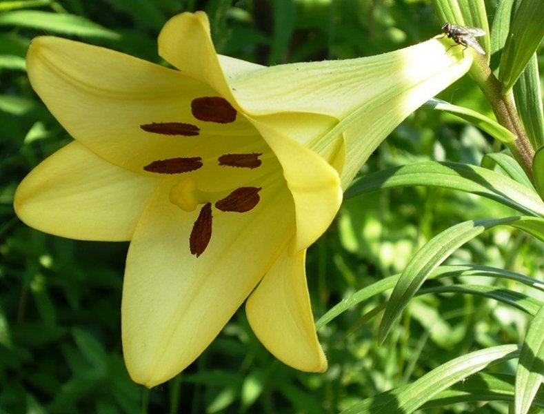 Цветет в июле-сентябре, достаточно продолжительное время. Этот крупный цветок трубчатой формы имеет солнечную лимонно-желтую окраску без вкраплений. При длительном пребывании на ярком солнце выгорает до белого. Эффектно смотрится на фоне насыщенной зеленой листвы. Вырастает не более 100-120 см. Обладает сильно выраженным, насыщенным сладким ароматом.