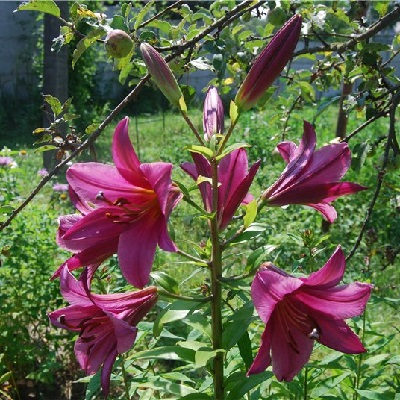 Луковицы лилии лонгифлорум Мияби относятся к длинноцветковым гибридам. Их выращивают в открытом грунте и в теплицах, а также используют для выгонки. Цветки этого сорта имеют вытянутую форму и диаметр до 17 см. Они похожи на огромные колокольчики и привлекают сочной лилово-розовой расцветкой с сиреневым оттенком. Эти грациозные растения вырастают до 100-110 см. Они имеют крепкий, устойчивый стебель. Посадив длинноцветковую лилию в рассеянной тени, можно долгое время любоваться ее цветением. В этом случае цветы держатся дольше, и лепестки прекрасно сохраняют свою яркую расцветку.