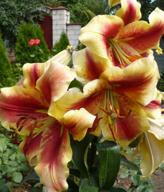 Саженцы и рассада многолетнего растения Лилия от-гибрид Холланд Бьюти (Lilium ОТ-hybrid Holland Beauty) удивят многих. Они вырастают до 140 см в высоту и выше, неприхотливы, устойчивы к грибковым заболеваниям. В августе растение зацветает. Цветки очень крупные, диаметром до 25 см, темно малиновой окраски с широкой кремовой каймой вдоль лепестка, направлены головками вниз и в стороны, при этом лепестки загибаются наружу. Аромат нежный и ненавязчивый. Для посадки лилии предпочитают открытые светлые или немного затененные места с хорошо дренированной слабокислой или нейтральной почвой.