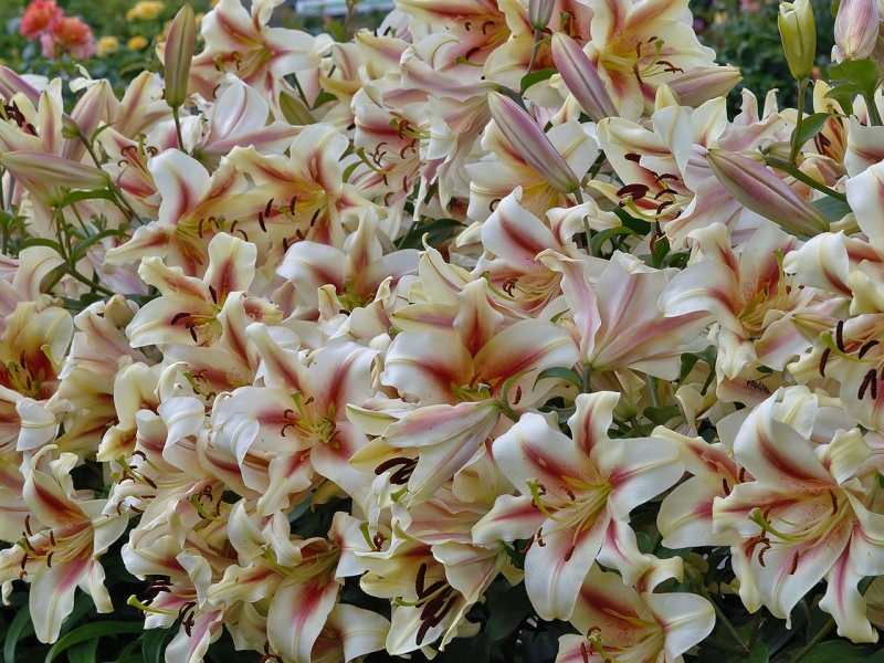 Луковицы лилии ОТ-гибрид Лавон (Lilium OT-hybrid Lavon) хорошо приживаются в открытом грунте 4-й зоны морозостойкости, могут зимовать под совсем небольшим укрытием. Окраска лепестков смешанная. В сердцевине – светло-зеленая звездочка, основа бело-желтая с красно-розовыми широкими крупными мазками от основания лепестка к середине. Пыльники большие, темно-коричневые. Диаметр цветка 14-18 см, высота растения – до 110 см. Декоративный многолетник с каждым годом вырастает выше и цветет обильнее. Пригоден для срезки, высадки в смешанных группах, оформления условного зонирования территории.
