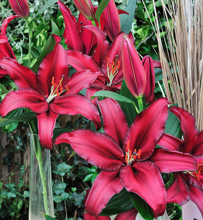 Луковицы лилии восточной Авиньер (Lilium oriental Avinger) — роскошный вариант для самых изысканных букетов. Цветы этого сорта особенно крупные (до 25 см в диаметре), ярко-бордовые с незначительным градиентом к более светлому центру. Лепестки махровые, с эффектными волнистыми краями. Они долго не осыпаются после среза, поэтому сорт ценится при составлении букетов. Лилия Авиньер — это многолетнее растение, которое редко вырастает выше 120 см. Она приживается в тепличном и в открытом грунте, легко переносит жару и заморозки. В плодородной почве, при регулярном внесении удобрений цветение особенно пышное и обильное и длится в течение второй половины лета.