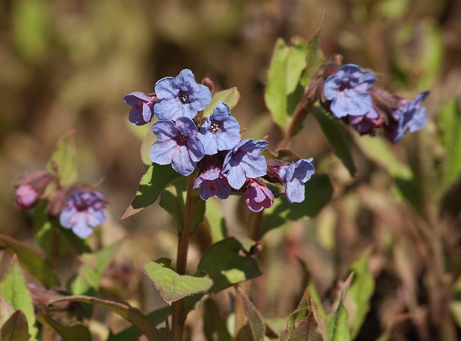 Рассада медуницы неясной (Pulmonaria obscura) имеет компактный внешний вид и вырастает около 25-35 см в высоту. Листики опушенные, собраны в прикорневую розетку и имеют пятнистый узор. В мае-июне цветет небольшими цветочками фиолетово-розового окраса. Преимущества медуницы неясной:
