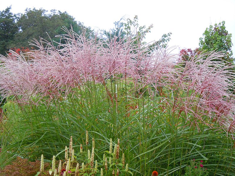 Саженцы Мискантус китайский Фламинго (Flamingo Miscanthus sinensis) разрастаются достаточно быстро, формируют мощную зеленую зону с изящными нежно-розовыми метелками в верхней части куста. Высота растения может достигать 2 метров, она зависит от климата и типа почвы. Лучше всего выбирать влажные участки в низинах, возле водоемов, желательно обеспечить достаточное количество солнечного света. Декоративность куста сохраняется с ранней весны до поздней осени, когда стебель приобретает желтовато-бордовый оттенок. На зиму рекомендуется обрезка, сухое укрытие и мульчирование.