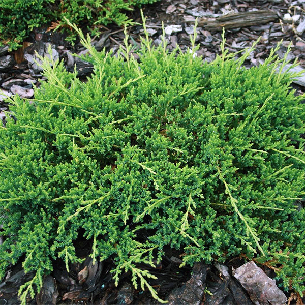 Саженцы можжевельника горизонтального Принц Уэльский (Prince of Wales) наиболее популярны для оформления газонов и клумб, а также используются в контейнерных формах.