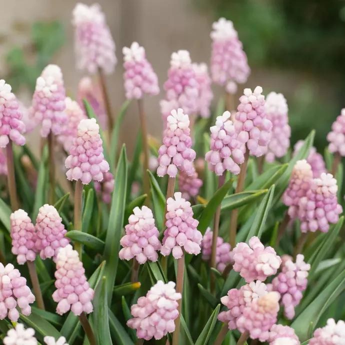 Луковицы мускари обыкновенного Пинк Санрайс (Muscari, Pink Sunrise) высаживают во влажную почву. Высота взрослого растения 15-20 сантиметров. Сорт ценится за раннее колокольчатое цветение и неприхотливость. Предпочитает периодический полив, но не переносит застоя влаги. Цветет в течение месяца с первых дней мая. Используется в одиночных и групповых посадках. Культура нетребовательна к местоположению, хорошо растет на солнце и в слегка затененных участках цветника. Для декоративности отцветшие соцветия удаляют или оставляют для образования семян.
