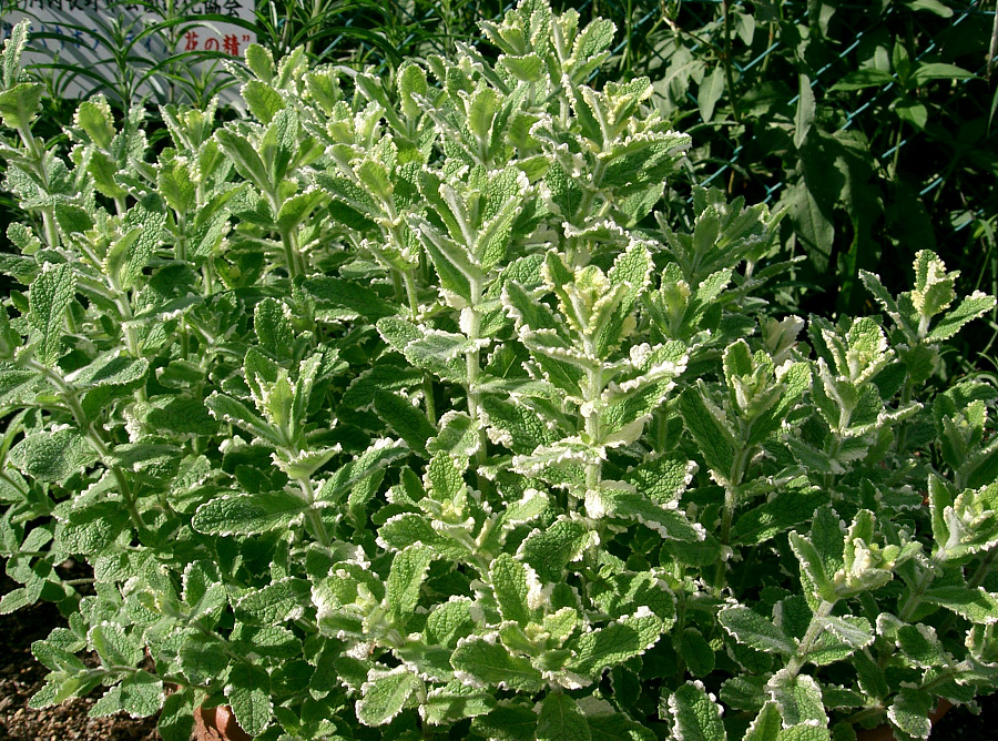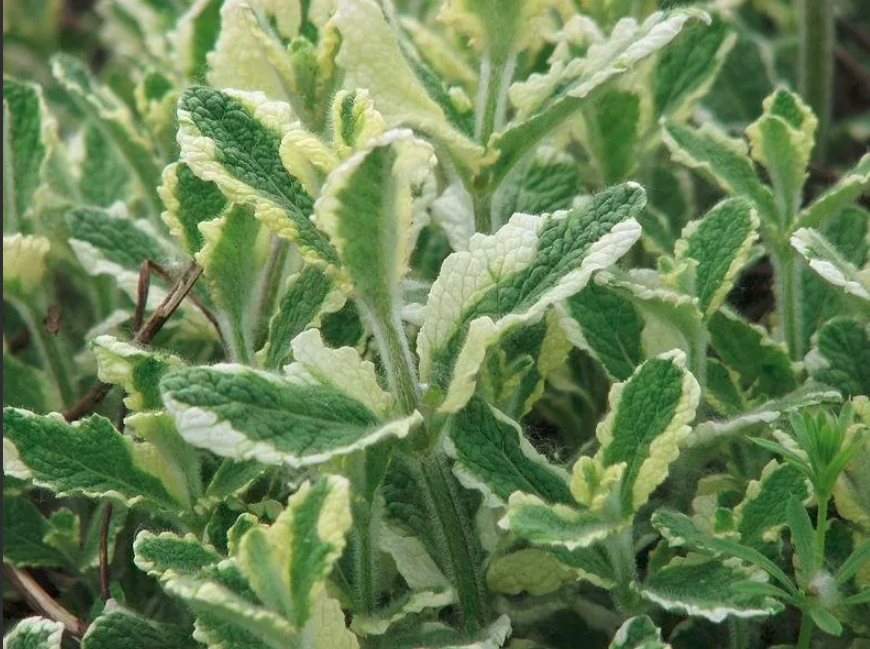 Рассада мяты «Вариегата» (Variegata) разрастается в высоту до 60 см. Высаживают ее обычно на плодородных и богатых питательными веществами участках. Этот сорт очень любит солнечный свет. В полузатененных местах и в тени растение теряет свой декоративный вид. На прямых стеблях, которые проросли из семян мяты «Вариегата», находится множество зеленых листочков. На краях они приобретают кремово-белый оттенок. Период цветения длится с июля по август. Цветочки мелкие и собираются с кистевидные соцветия. Окрашены они в белый цвет. Рассаду мяты «Вариегата» используют для оформления участков и в лечебных целях.