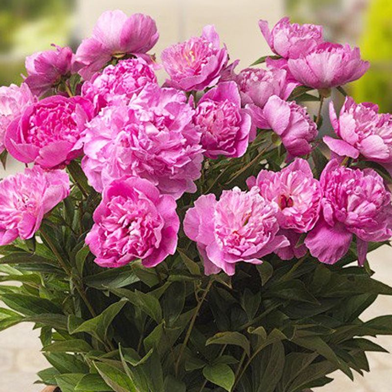 Луковицы пиона для патио Рим относятся к сортовой серии, которая очень популярна у цветоводов за компактные кусты и обильное продолжительное цветение. Высота данного сорта не превышает 20 сантиметров, растение имеет небольшие рассеченные листья. В силу компактных размеров подходит для выращивания как в открытом грунте, так и в контейнере. Многолетний пион Рим имеет ярко-розовые, сильно махровые цветы с диаметром до десяти сантиметров. Свои лучшие качества растение проявит на 2-3-й год после посадки. Отлично смотрится в группах с другими низкорослыми пионами, может выращиваться на балконе.