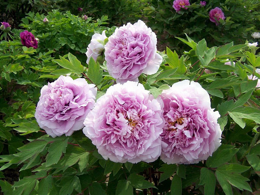 Саженцы пиона древовидного Песня дождя (Paeonia Suffruticosa) используются для групповых и одиночных посадок. Куст высотой до 1,6 метра. К составу почвы сорт не требователен, но лучше всего растет на плодородных, щелочных и хорошо дренированных почвах. Пион желательно сажать на солнце или в легкой полутени. Цветки махрового типа, лепестки прилегают друг к другу. В центре – ярко-желтые тычинки. Диаметр от 16 до 20 сантиметров. Оттенок лепестков нежно-розовый с голубоватым отливом. Ближе к центру розовый переходит в красный цвет. Бутоны распускаются в мае.