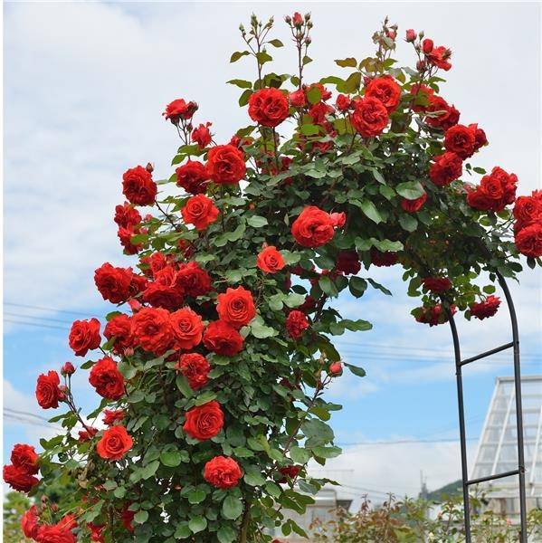 Саженцы розы парковой Сантана (Santana) относятся к сортам, лишенным аромата, что, полностью компенсируется их невероятной красотой, за которую их так любят цветоводы и ландшафтные дизайнеры. Прекрасные цветы радуют в любой стадии цветения, имеют насыщенный кроваво-красный цвет, устойчиво держатся на цветоносах во время дождя и долго сохраняют привлекательный вид. Интересное отличие этого сорта в том, что кисти с 3-7 цветками появляются не только на верхних побегах, а могут покрывать весь куст с самого низа. Обильное цветение благодаря силе куста и устойчивости к болезням будет радовать до самых морозов.
