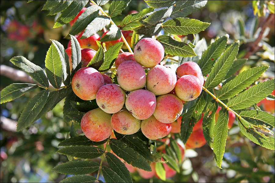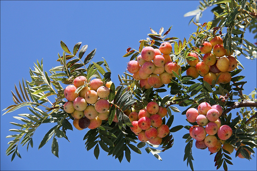 Саженцы Рябины Моравская крупноплодная (Krupnopłodnaja) – яркий представитель рябины обыкновенной, этот сорт полюбился всем сразу после его открытия в 19 веке. Молодое дерево имеет пирамидальную форму, а к старости они становится шире, но верхушка по-прежнему возвышается над остальной кроной. Рябину лучше высаживать на границе участка, ведь она достаточно высокая. Цветы у этого вида поваляется позже, чем у других сортов. Ягоды довольно крупные – сантиметр в диаметре. Их особенно ценят в кулинарии. Оранжевая мякоть кисловатая со сладким шлейфом. Красные ягоды служат не только как вкусный урожай, но и хорошо украшают сад.