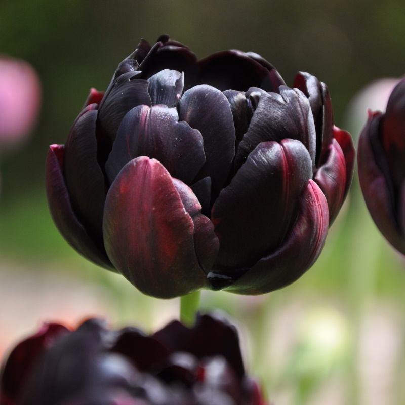Тюльпан махровый поздний блэк хиро - это великолепное растение с темно-бордовыми, почти черными цветками, которые привлекают внимание своей необычной окраской. Этот сорт тюльпанов отличается высокой морозостойкостью и может быть выращен в большинстве регионов России. Стебли растения достигают высоты до 45 см, что делает его идеальным для групповых и одиночных посадок. Листья тюльпана зеленого цвета, создавая красивый контраст с темными цветками.
