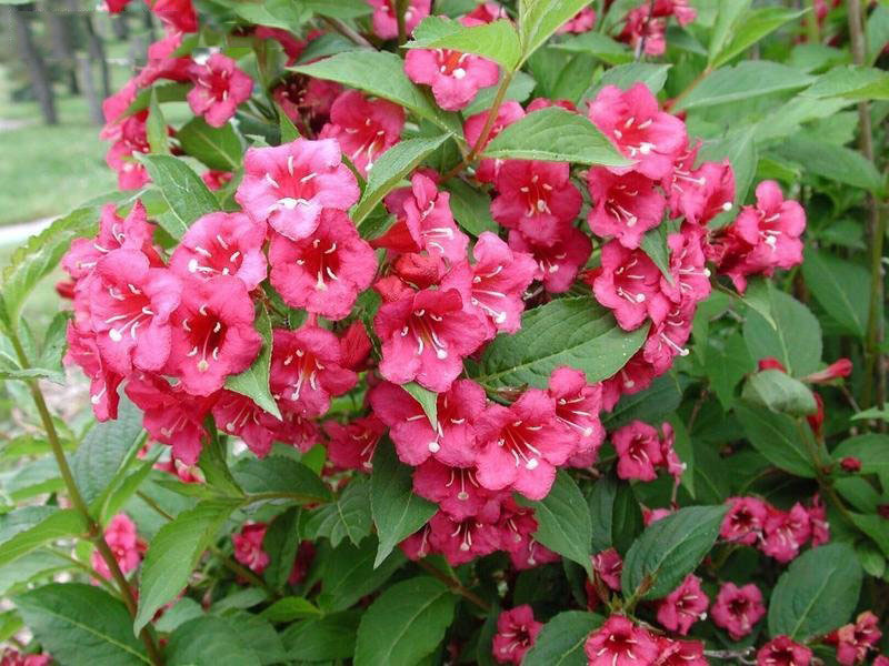 Саженцы Вейгелы гибридной Bristol Ruby (Бристол Руби) очень популярны среди разновидностей этого кустарника. Крупномер достигает 2,5 метров ввысь и имеет пышную крону. Этот сорт быстрорастущий, его побеги свисают. Время цветения Вейгелы гибридной Bristol Ruby приходится на середину лета – июнь и июль. Соцветия состоят из 3-5 цветков, имеют колокольчатую форму и рубиново-красный цвет. Листья растения долго держат цвет и опадают только поздней осенью. Они имеют эллиптическую форму. Условия для хорошего роста: